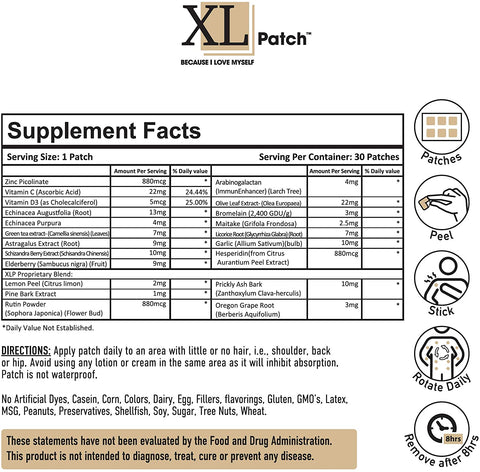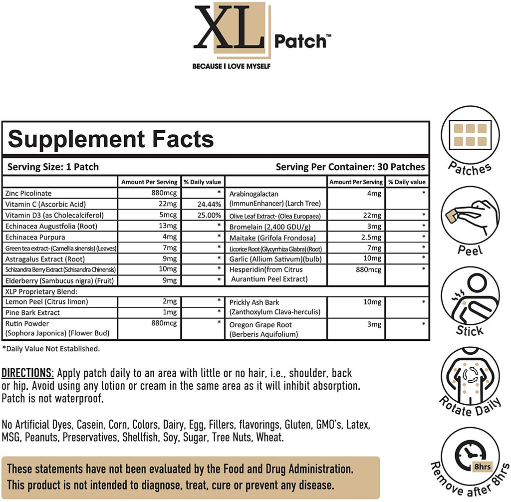 XL Patch products are Latex, Lactose., Gluten and Sugar-free