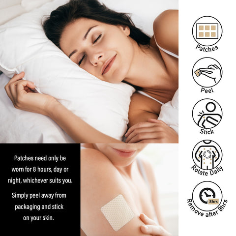 Apply patch daily to an area with little or no hair, i.e., shoulder, back or hip. For best results, it is recommended to wear XL patches for 8 hours. There is no additional benefit wearing the patch longer than 8 hours. Patches can be worn during sleep. Avoid using any lotion or cream in the same area as it will inhibit absorption. Patch is not waterproof. It is ok to wear multiple patches at a time.
